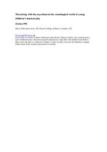 Pitt, J. (2024) Theorising with the mycelium in the commingled world of young children’s musical play. Music Education Research pp. 1-14. ISSN 1461-3808 (print) 1469-9893 (online)